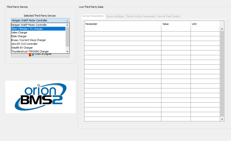 In the selected third-party device select ELCON / Bestgo / TC Charger
