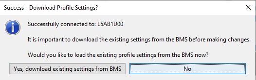 If connection was successful, you will get this window, click Yes, download existing settings from BMS.