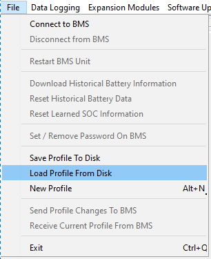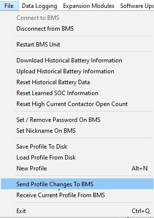 Another way to load profile is under File then Receive Current Profile From BMS.