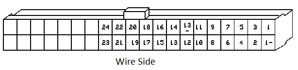 To make sure you have the small cell wires connected correctly you can perform a voltage test at the cell tap connector that was unplugged at the BMS under driver's seat. Diagram of this connector is below. Prior to plugging in connector take a voltage meter set to read DC voltage. During this entire test you will place negative test lead on pin 1- which is a black wire in the corner. Next place the positive test lead on pin 1. Meter should read the voltage of cell #1 which would be roughly 3.2 volts. Move positive test lead to pin #2 and voltage will increase roughly 3.2 volts over the last reading so in this case 6.4 volts. Keep incrementing up each pin#. Each one should increase the roughly 3.2 volts. When you get to 13- this is a ground going to pin #13 so it will not increase on this reading. Will read the same of pin #12. At the end pin #24 you will read full pack voltage of roughly 80 volts. If any of the readings say go up 6 volts or go down then you have wires wired incorrectly at the cells. Need to source which ones are incorrect, fix and then retest.